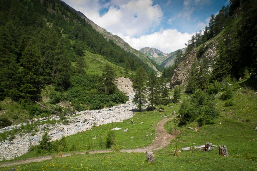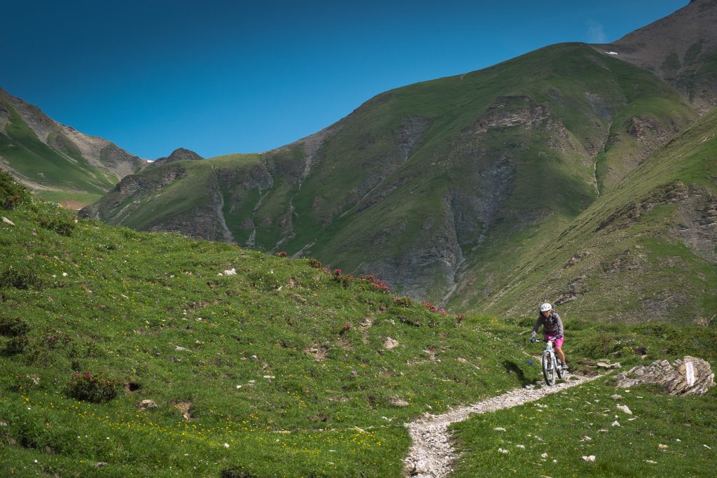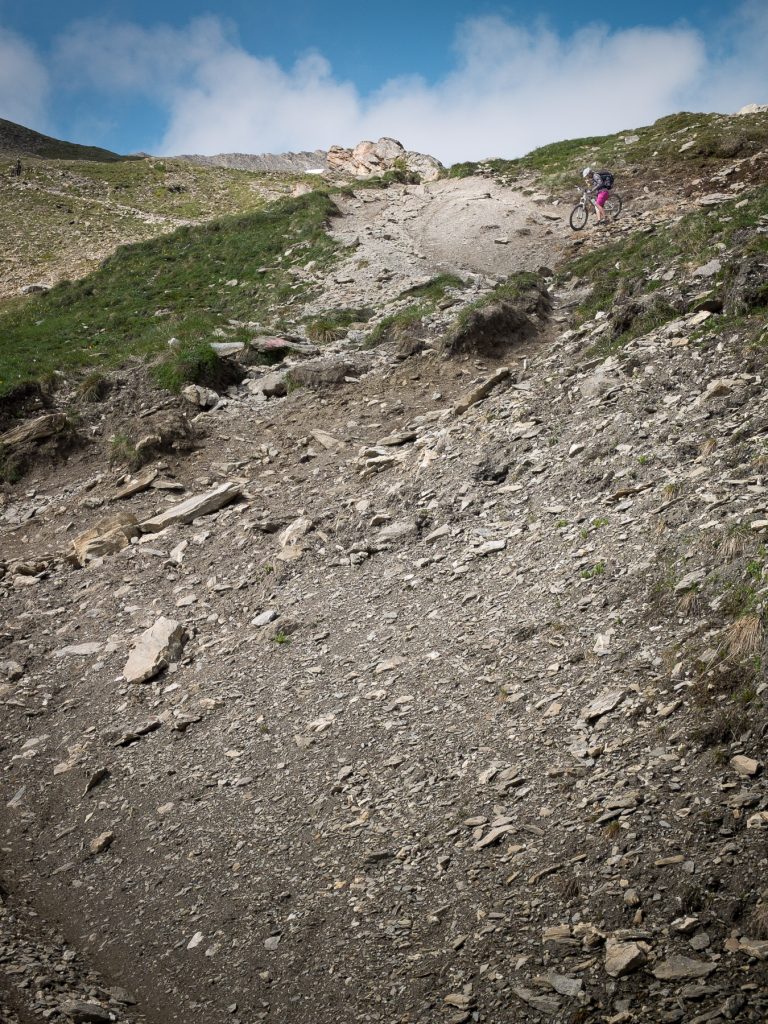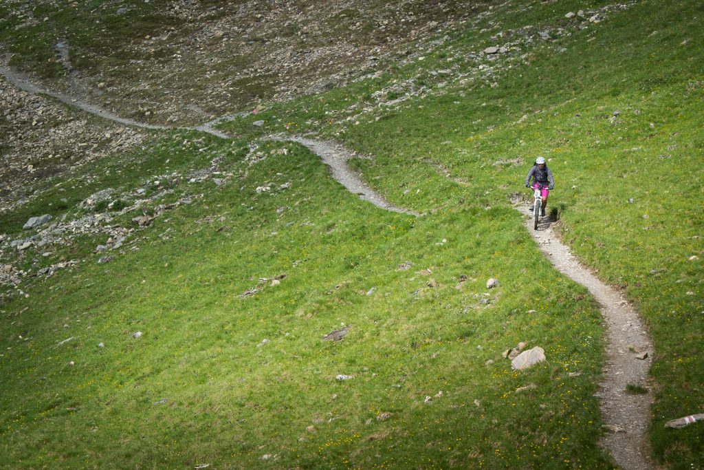 Auf unserem Weg nach Zernez, wo wir unsere Unterkunft für diese Nacht aufschlagen, verkoffern wir uns ein wenig, indem wir in Sush eine falsche Richtung einschlagen. Wir bleiben aber am Weg und drehen nicht um, weil wir glauben, auch auf dieser Variente an unser Ziel zu gelangen. Gott sei Dank haben wir uns so entschieden. Denn unser Fehltritt entpuppt sich als wahres Sahnestückchen an Trail und wird uns immer als unser *Little Canada* in Erinnerung bleiben.