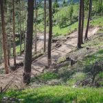 Voll motiviert von den Tables und Anliegern im unteren Bereich der Skipiste, wo im Winter der Tellerlift rotiert, machen wir uns wandernderweise auf um unsere Neugier zu stillen. Aus einem „schaun wir mal ein Stück weiter rauf“ wird ein Anstieg bis zur Bergstation der Bürgeralpe. Dort befindet sich auch der Start der zwei geplanten und im Bau befindlichen Strecken, eine Freeride und eine Downhill. Letztere sind wir dann teilweise hinuntermarschiert und mussten feststellen, dass diese an manchen Stellen sehr fordern und selektiv angelegt wird 🙂